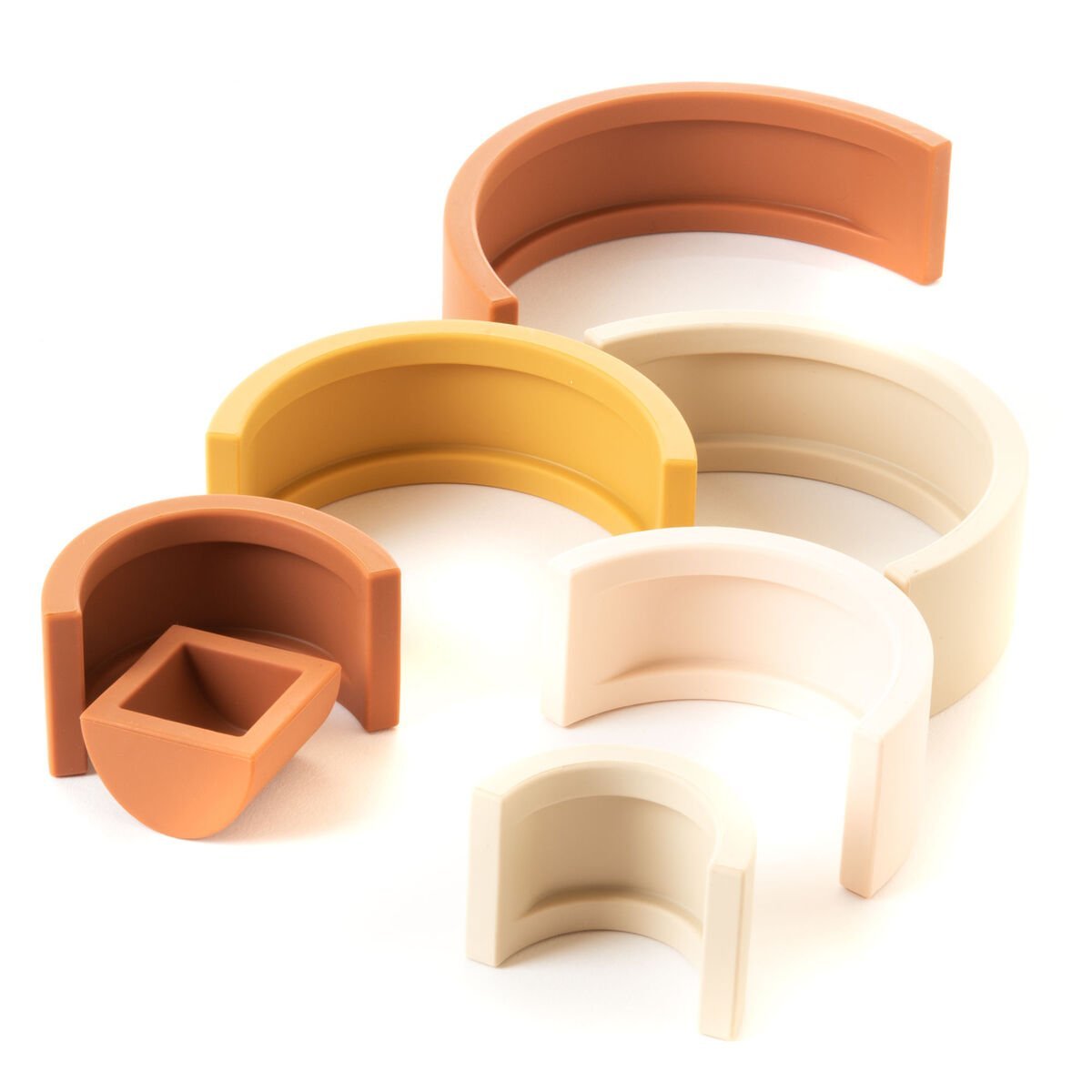 Ofereça um jogo de empilhar original e colorido com este arco-íris de silicone.