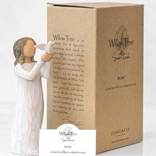 Willow Tree® é uma linha íntima de esculturas figurativas que falam de maneiras silenciosas para curar, confortar, proteger e inspirar. A artista Susan Lordi esculpe à mão o original de cada figura de seu estúdio em Kansas City, Missouri. As peças são moldadas a partir de suas esculturas originais e individualmente pintadas à mão. A expressão é revelada apenas por meio de gestos … uma inclinação da cabeça, colocação das mãos, uma volta do corpo. A simplicidade da forma e a ausência de características faciais significam Willow Tree. Susan espera que estas peças sejam significativas tanto para quem as oferece e para quem as recebe.