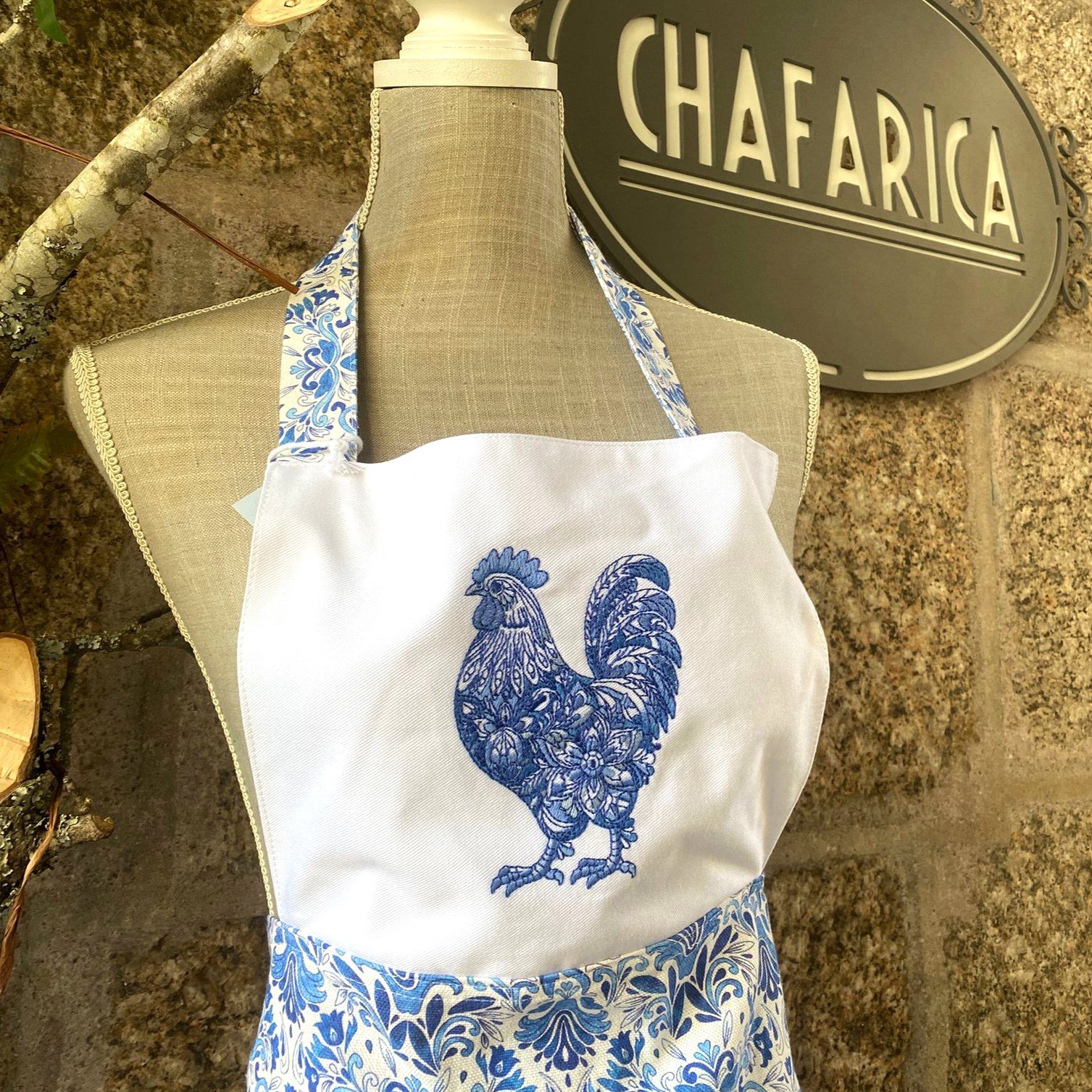 Avental de Cozinha com Bordado – Coleção Galo Azul