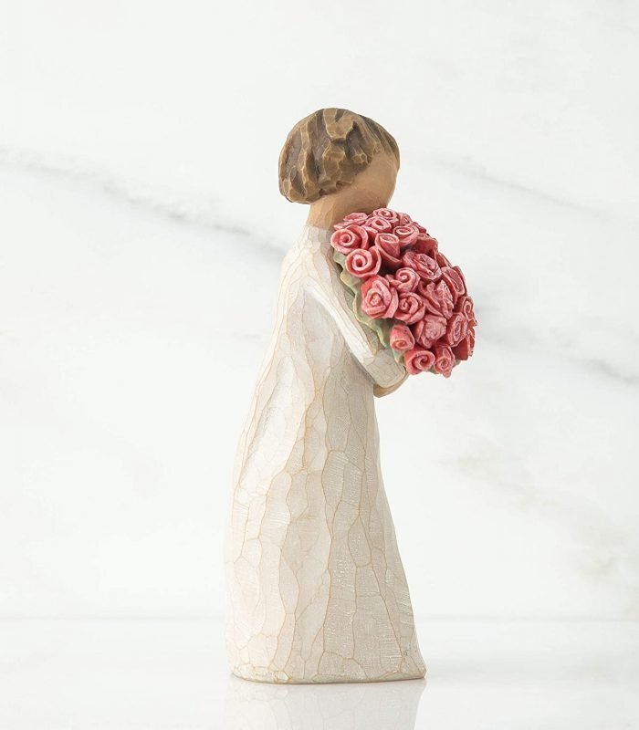 Fazer qualquer pessoa, desde a mãe a uma irmã ou a uma amiga, sentir-se incrivelmente amada com esta escultura intemporal com um lindo feixe de rosas cor-de-rosa.