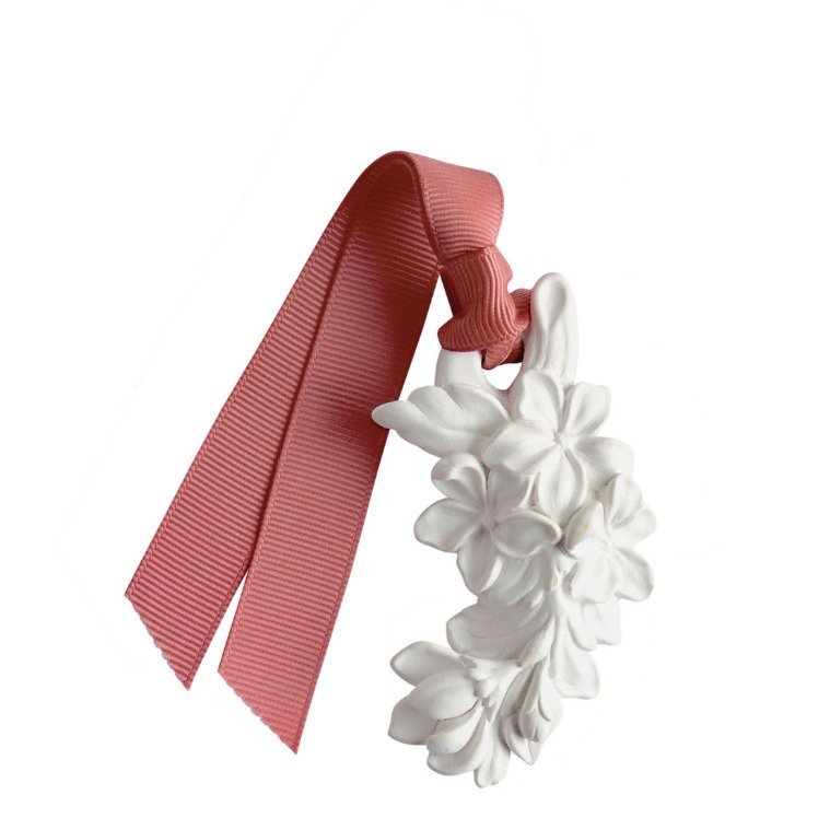 Totalmente feito à mão, este enfeite em gesso representa um delicado ramo de cerejeira em flor. Ele perfumará delicadamente e por muito tempo todos os pequenos espaços da sua casa, como armários, gavetas ou malas.