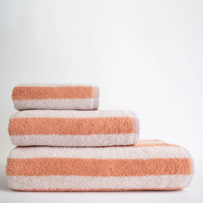 Jogo de banho 3 peças Double Stripes é ideal para quem procura toalhas de banho às riscas em algodão de alta qualidade. Macia, absorvente e resistente, com um toque moderno e descontraído e com fabrico português.