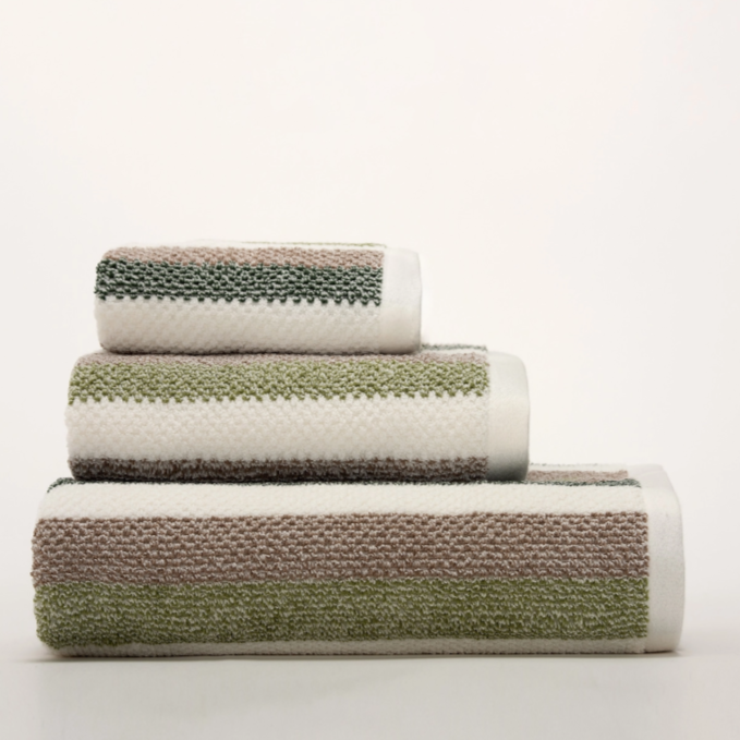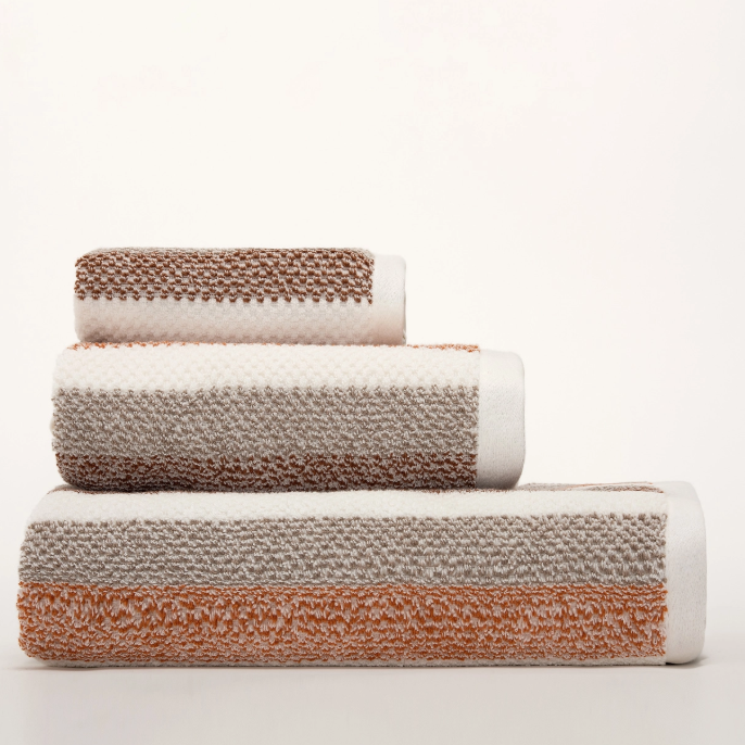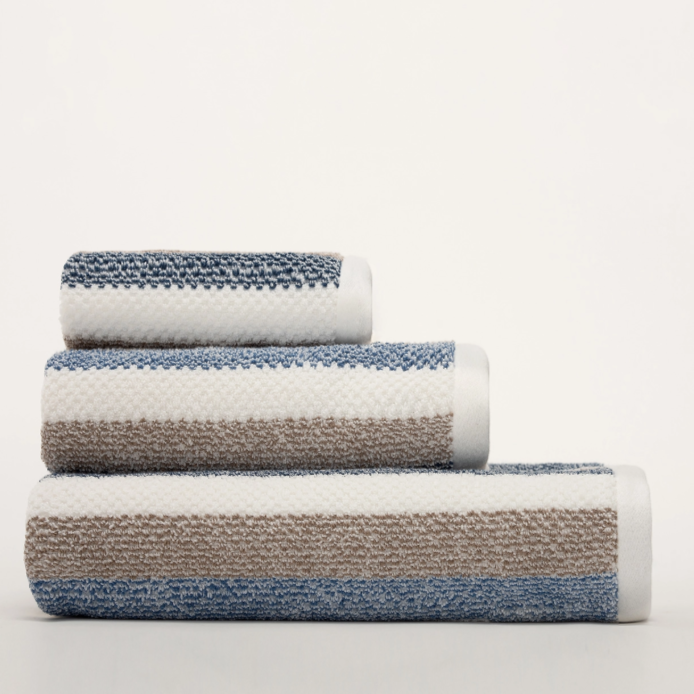 Jogo de banho 3 peças Vista é ideal para quem procura um padrão de riscas suaves e uma mistura de tons naturais que transmite equilíbrio e conforto visual. A textura subtil do tecido confere profundidade e dimensão, com fabrico português e várias cores disponíveis.