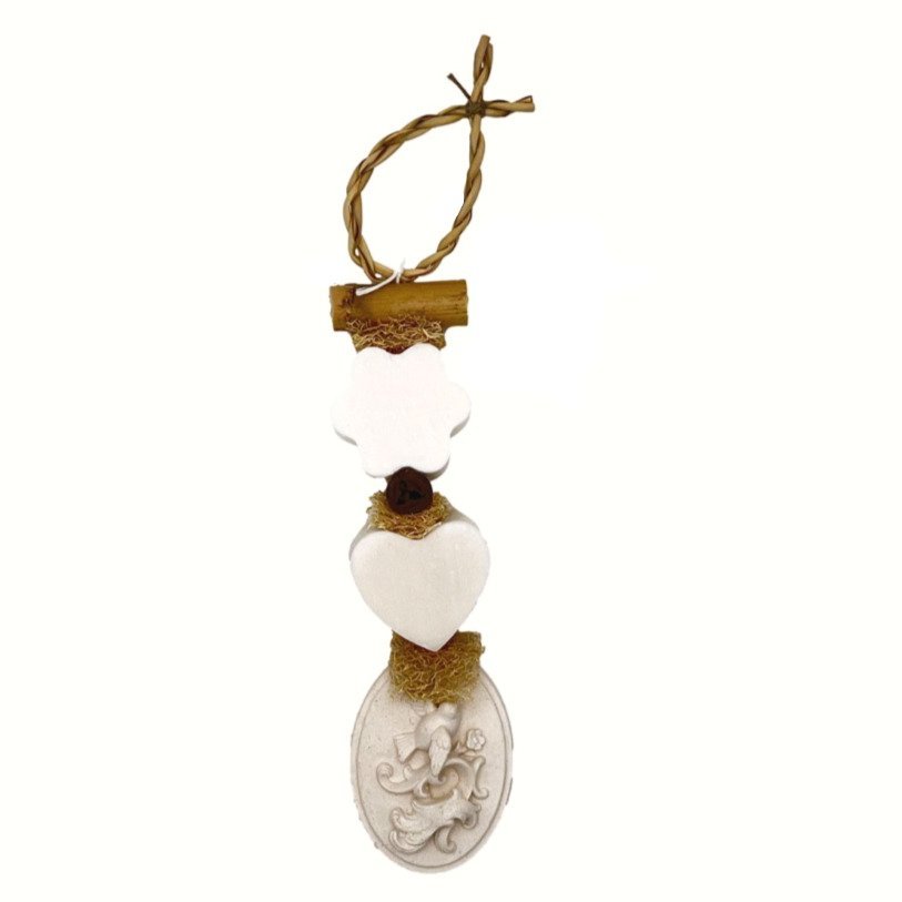 A guirlanda contém 2 sabonetes e 1 gesso: